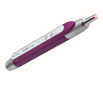 Der verwendete Laser ist ein Low-Level-Laser (TL eco 50) der Firma Hentschl mit einer Wellenlänge von 660nm. Zum Vergleich: Hautärzte bestrahlen in einem Bereich von bis zu 9000nm.